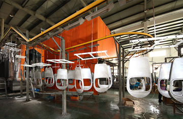 噴粉流水線:噴涂效果在機械強度、附著力、耐腐蝕、耐老化等方面優于噴漆工藝,成本也在同效果的噴漆之下。靜電噴粉房工作原理:工作狀態,離心風機通過濾芯將粉體噴房內的空氣持續